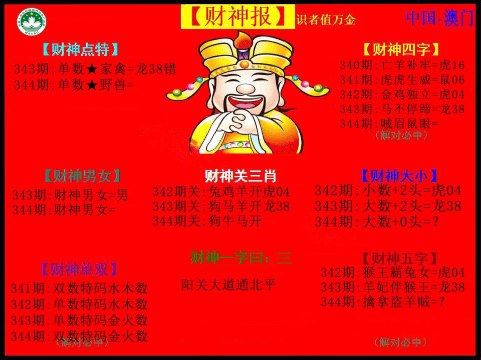344期:澳彩宝典:3333226.com【致富三六九肖】开:?00中